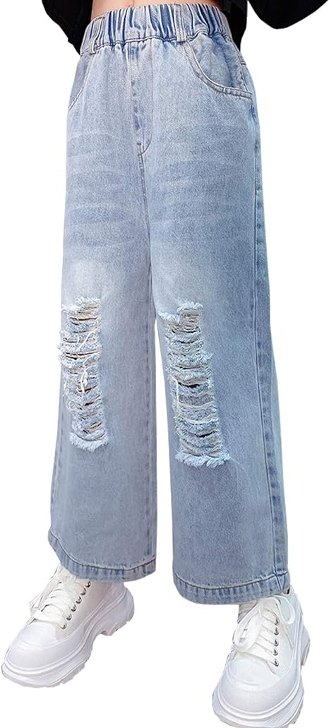 - Fabric has some stretch,and it’s soft and comfortable. Ripped wide leg jeans for girls
